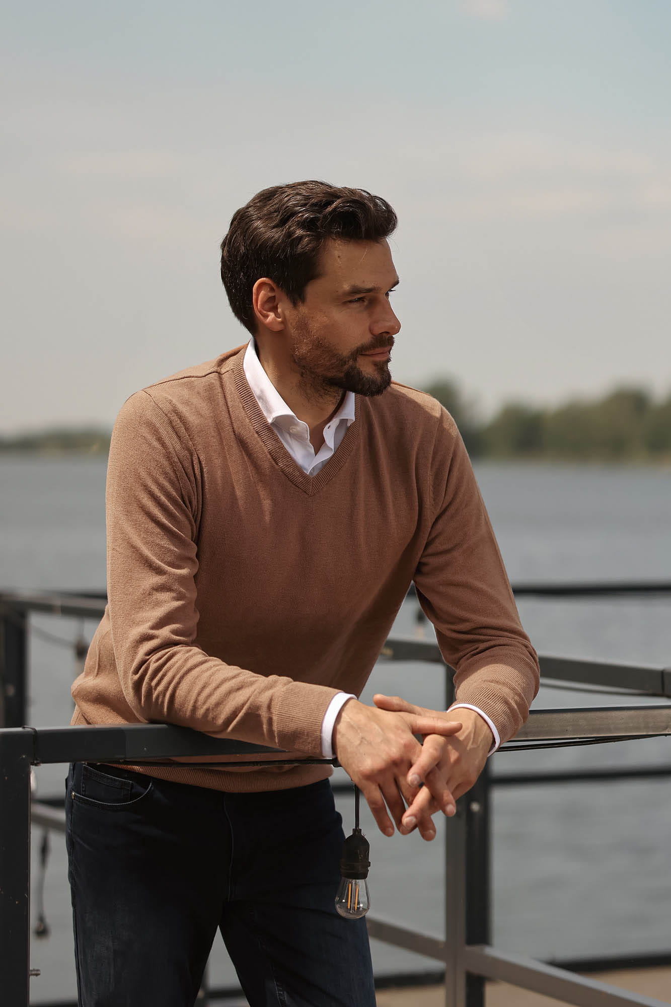 Beżowy sweter męski bawełna 85%, wełna 15% – KOD 113