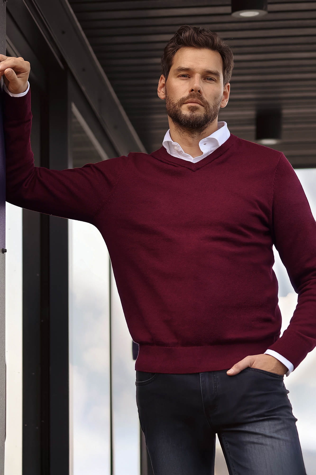 Bordowy sweter męski bawełna 100% – KOD 106