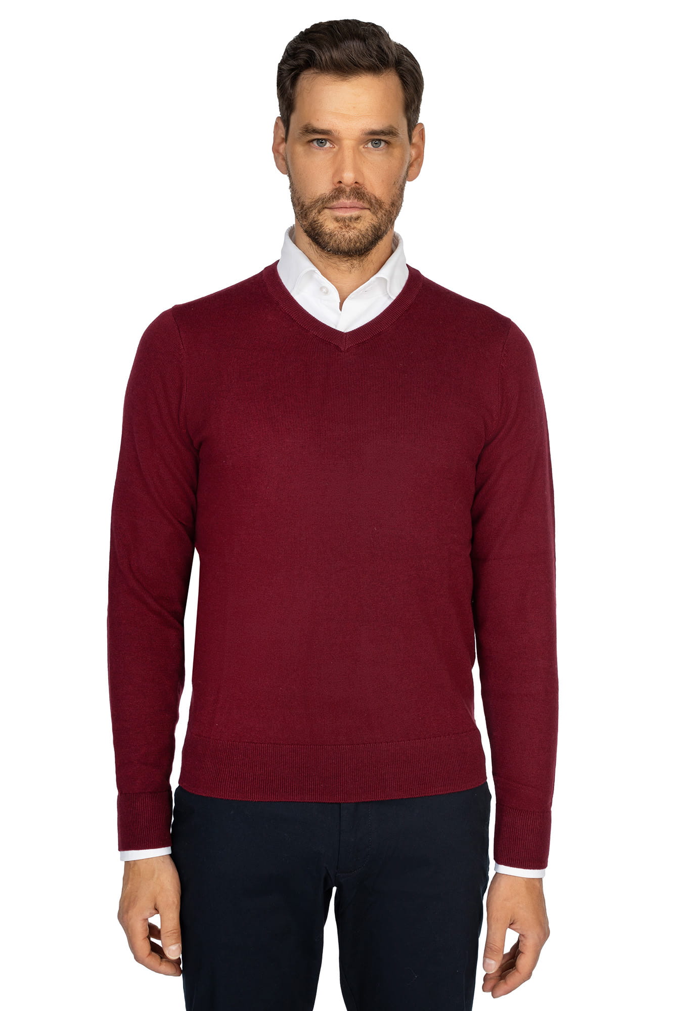 Bordowy sweter męski bawełna 85%, wełna 15% – KOD 116