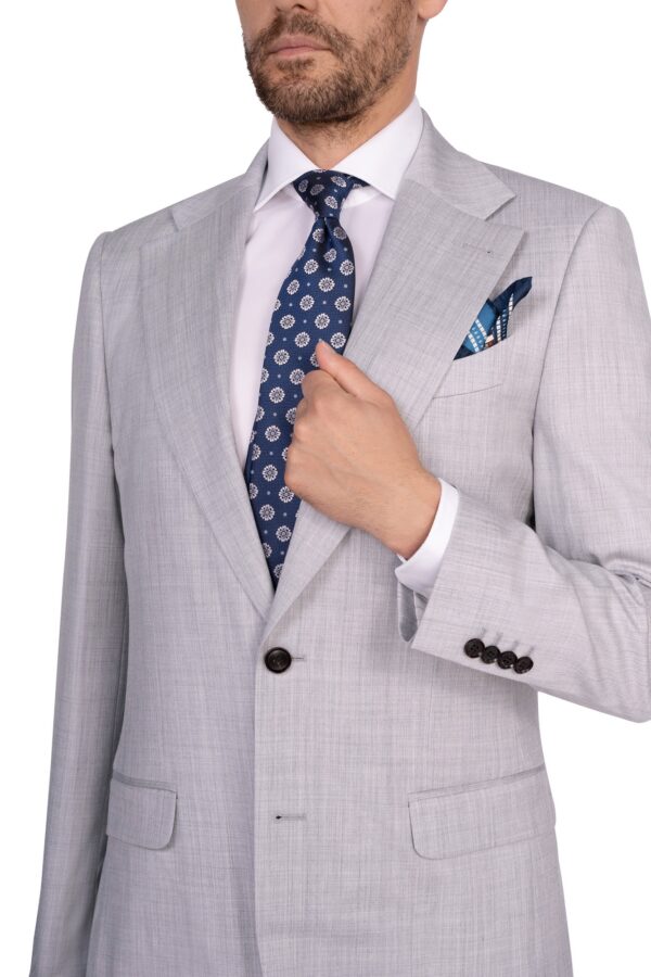 Ciemny kolor predestynuje Ivana do bycia garniturem wieczorowym oraz na uroczyste okazje w ciągu dnia. Wprawdzie kolor jest bardzo spokojny i nie wzbudzający emocji, ale za to garnitur przykuwa uwagę wieloma sartorialnymi smaczkami, takimi jak: szerokie klapy, rozpinane guziki przy rękawach, wzorzysta podszewka wiskozowa, guziki z rogu bawolego, czy brustasza (kieszonka piersiowa) w kształcie łódeczki. Ma też – co warto podkreślić – klasyczne proporcje, a górny guzik marynarki jest położony na wysokości talii – co powoduje optyczne wysmuklenie sylwetki.