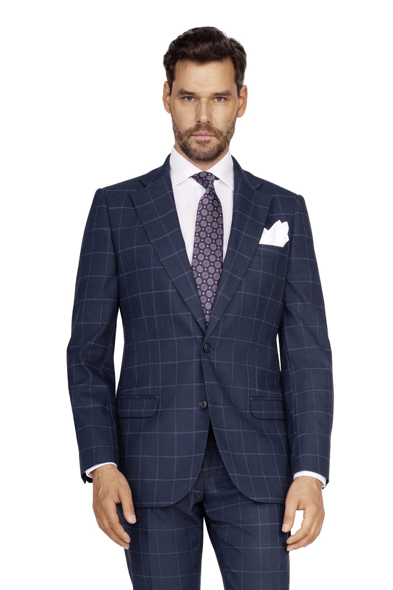 Strona głównaKolekcja męskaGarnituryGarnitury wizytoweGranatowy garnitur w kratę, CEZARY