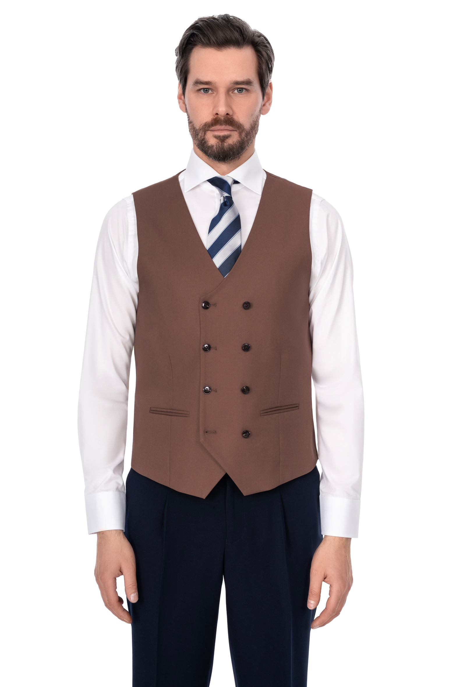 Strona głównaKolekcja męskaKamizelkiKamizelka brązowa dwurzędowa BORNEO