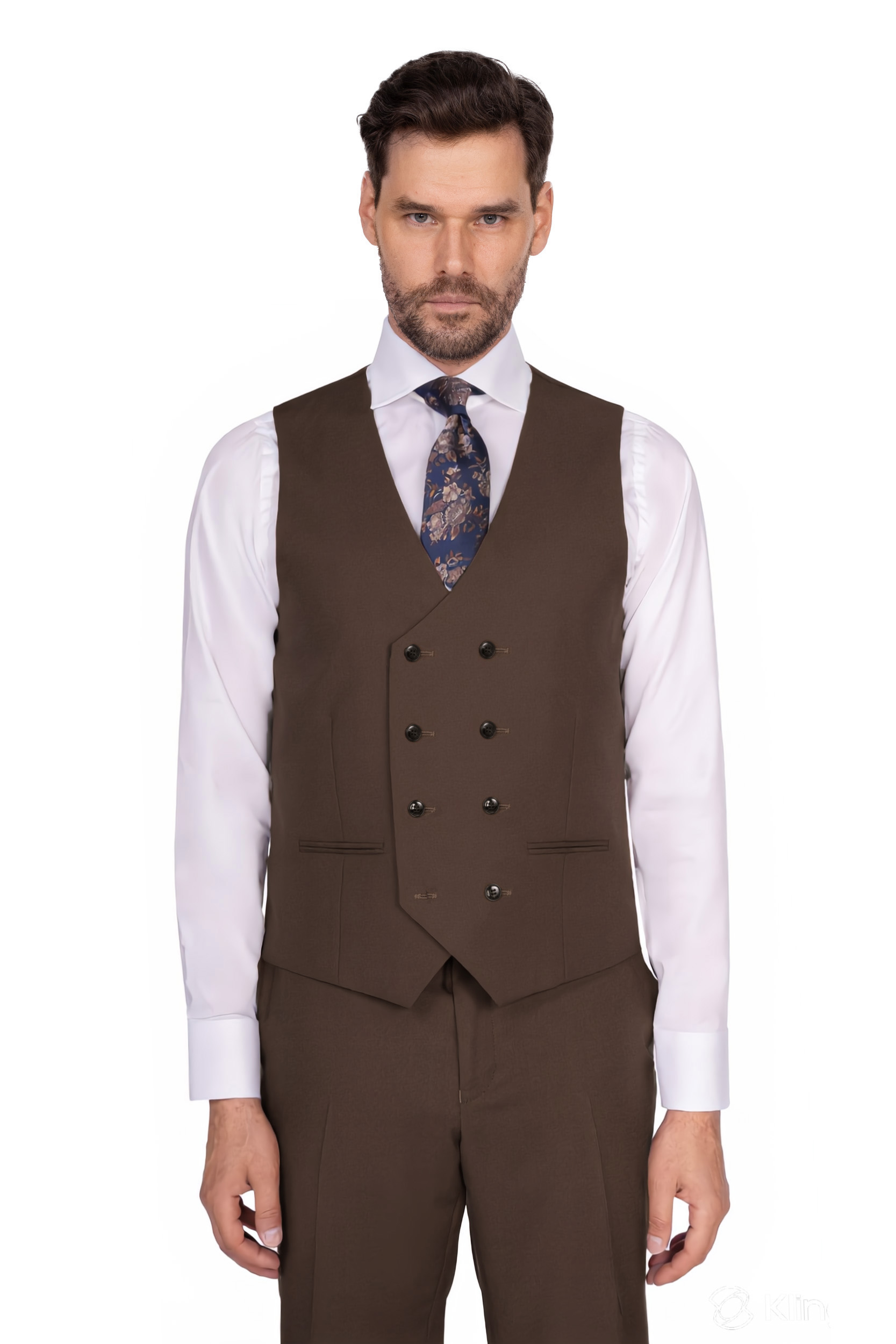 Strona głównaKolekcja męskaKamizelkiKamizelka dwurzędowa brązowa TENERYFA