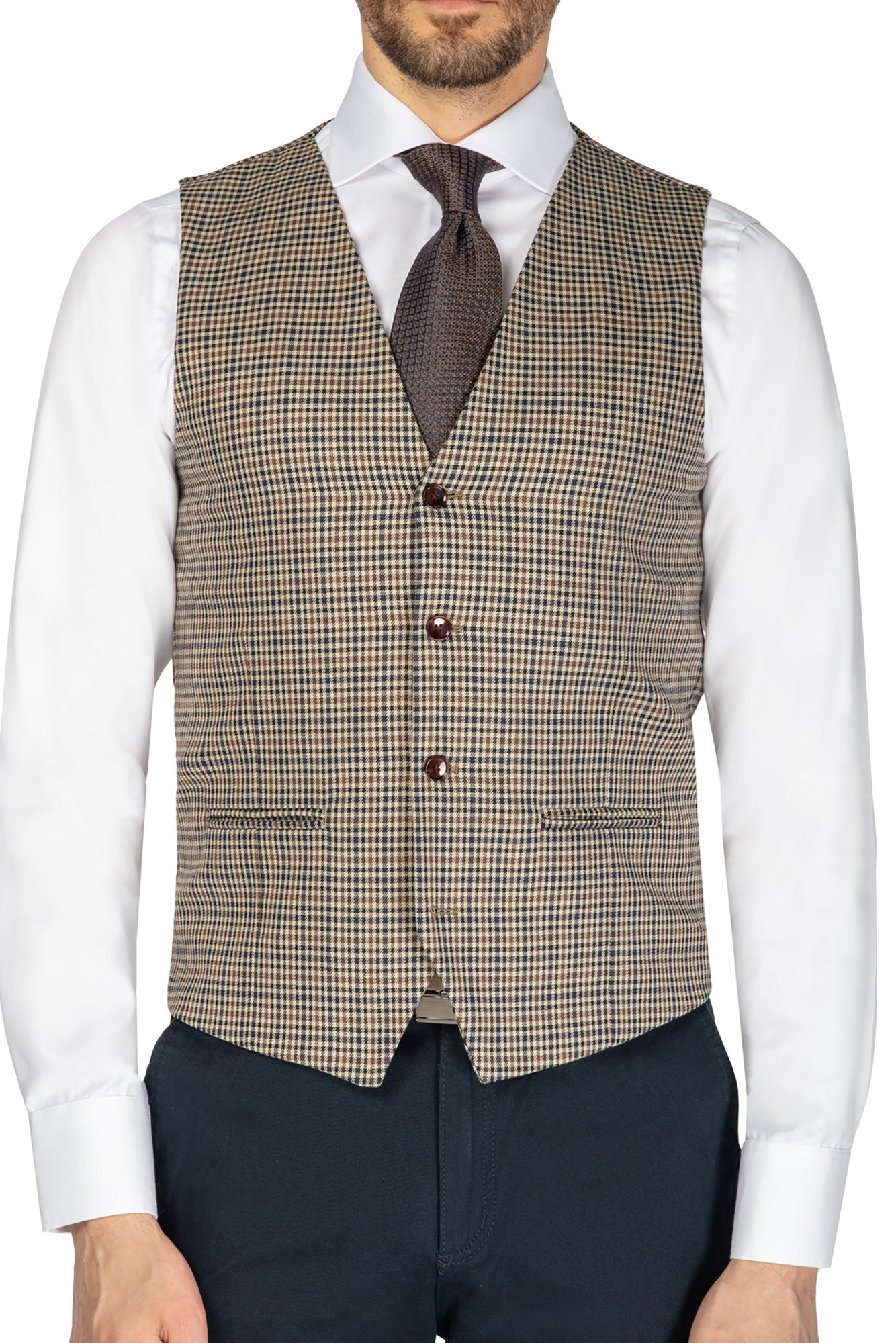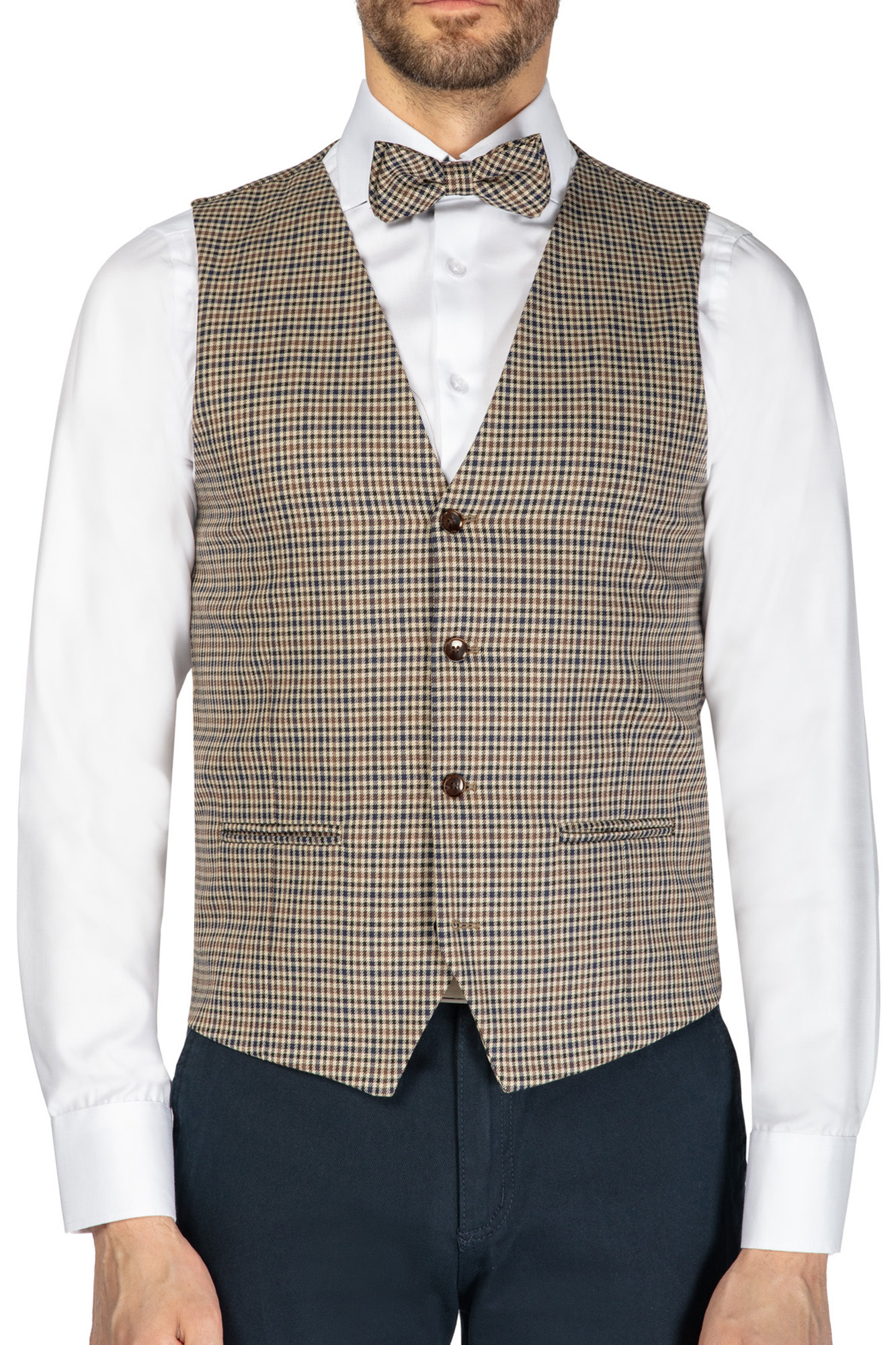 Kamizelka Kamil, pepitka, komplet z muchą