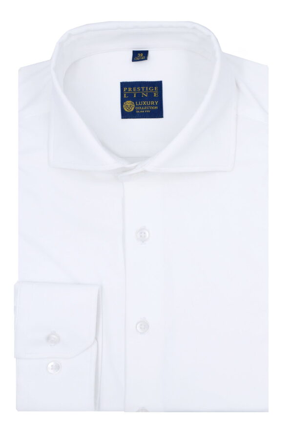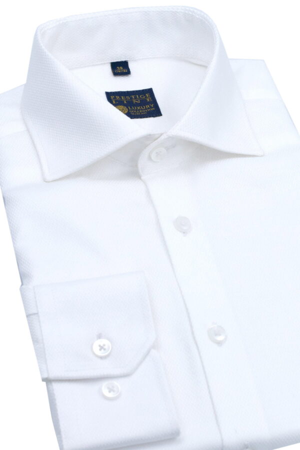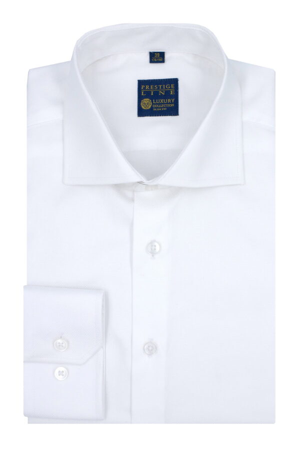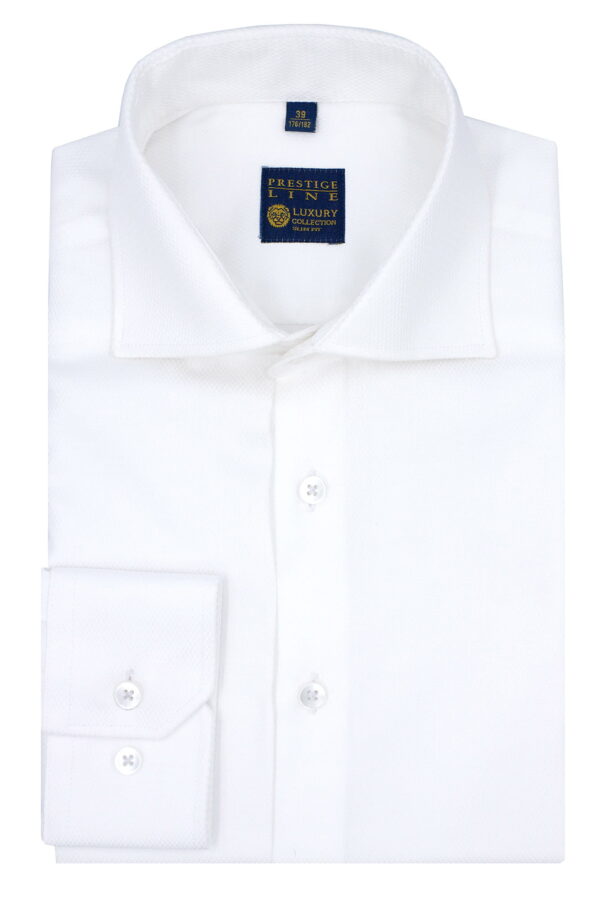 Koszula biała 98% bawełna, 2% elastan – KOD 210, tkanina z delikatną strukturą