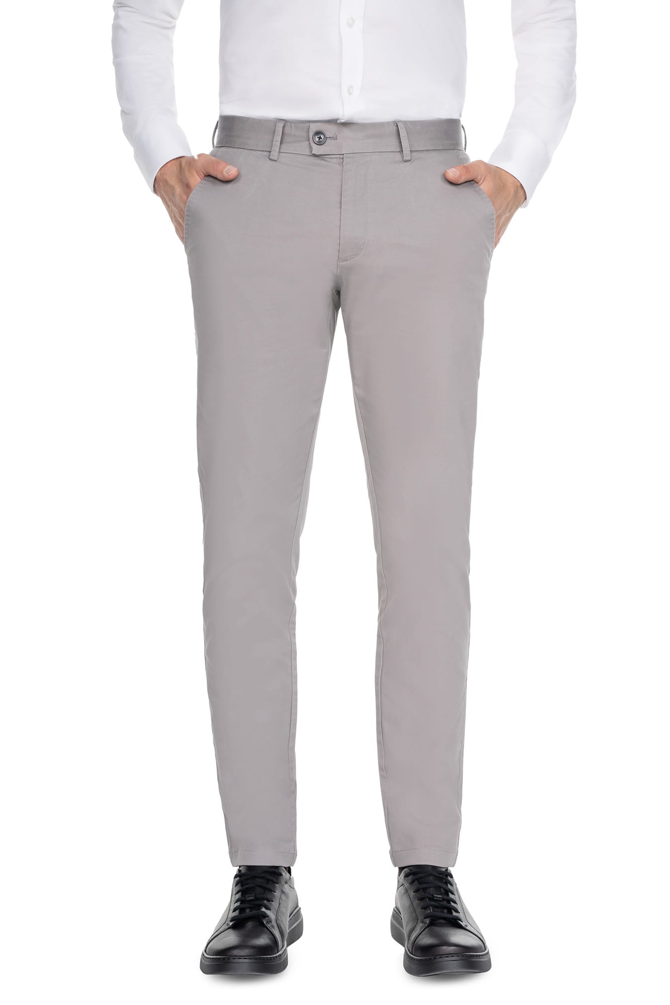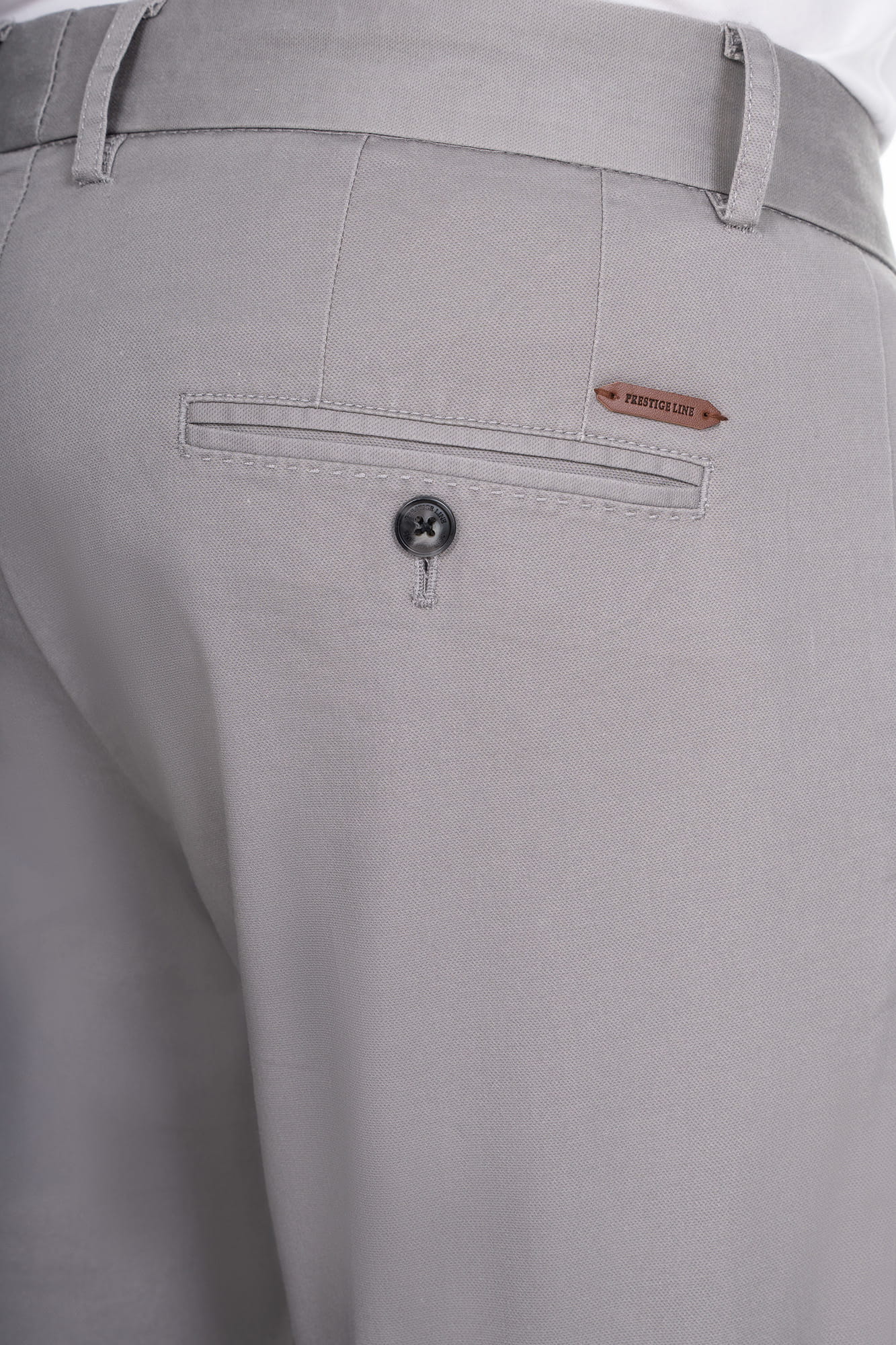 SPODNIE CHINOS KOD 401 – szare spodnie chino, które łączą ponadczasowy fason z nowoczesną technologią wykończenia tkanin. Uszyte z wysokogatunkowej bawełny (97%) z dodatkiem elastanu (3%), zapewniają nie tylko elegancki wygląd, ale i wyjątkowy komfort noszenia.