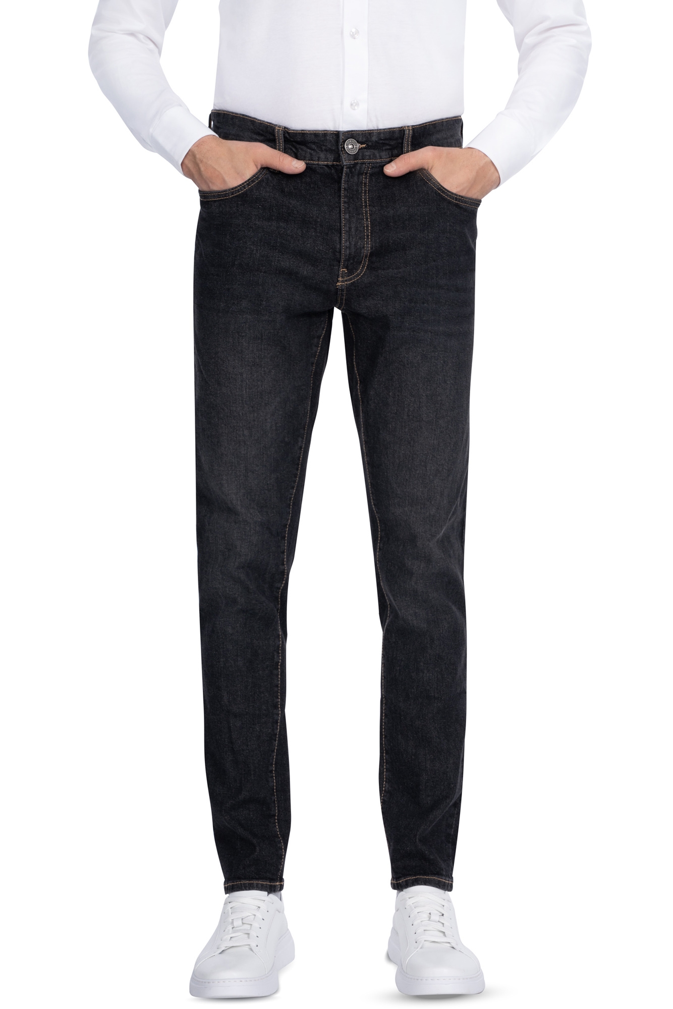 Czarne spodnie męskie JEANS, 70% bawełna, 28 poliester, 2% elastan – KOD 905