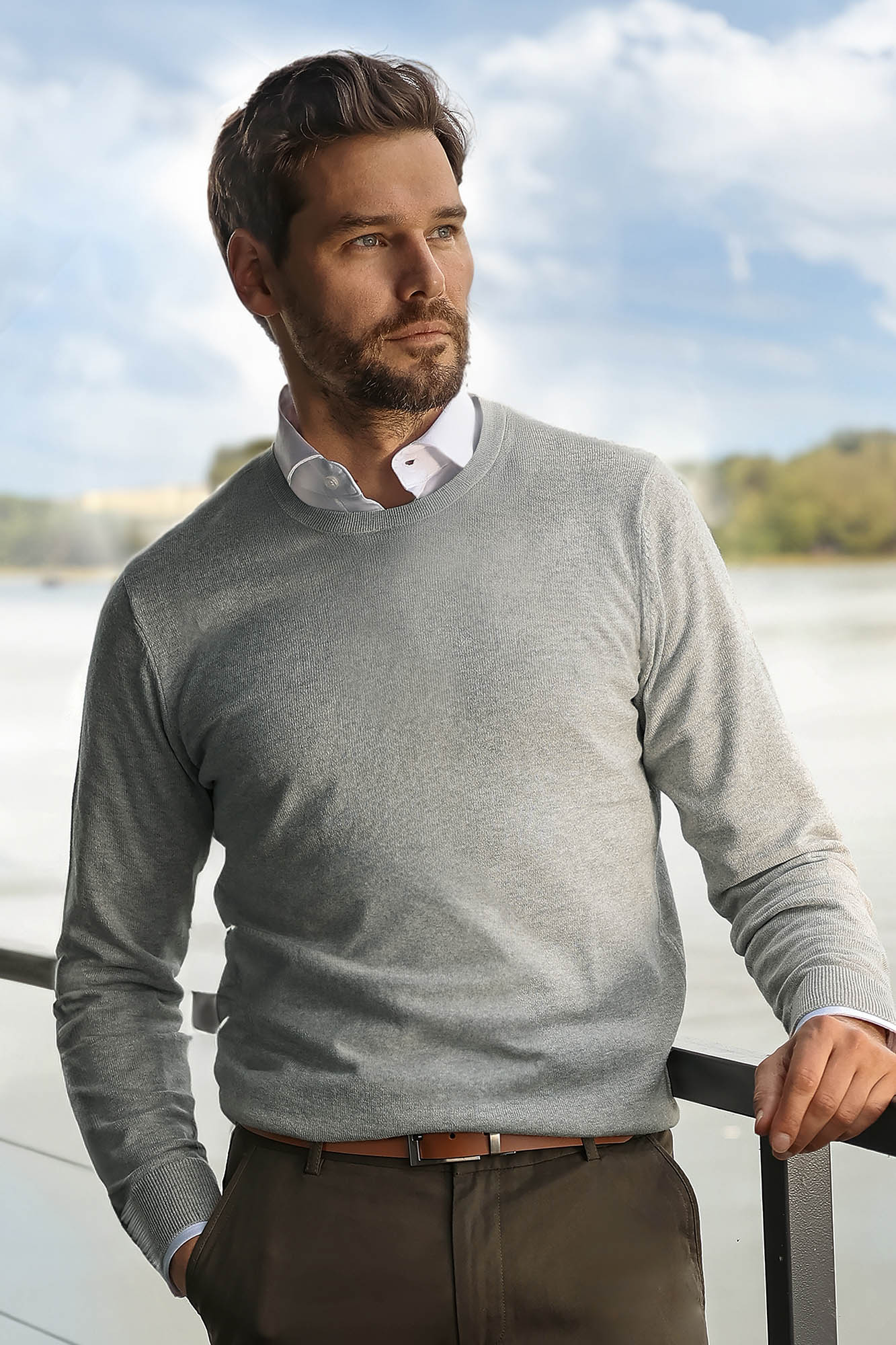 Szary sweter męski bawełna 100% – KOD 110